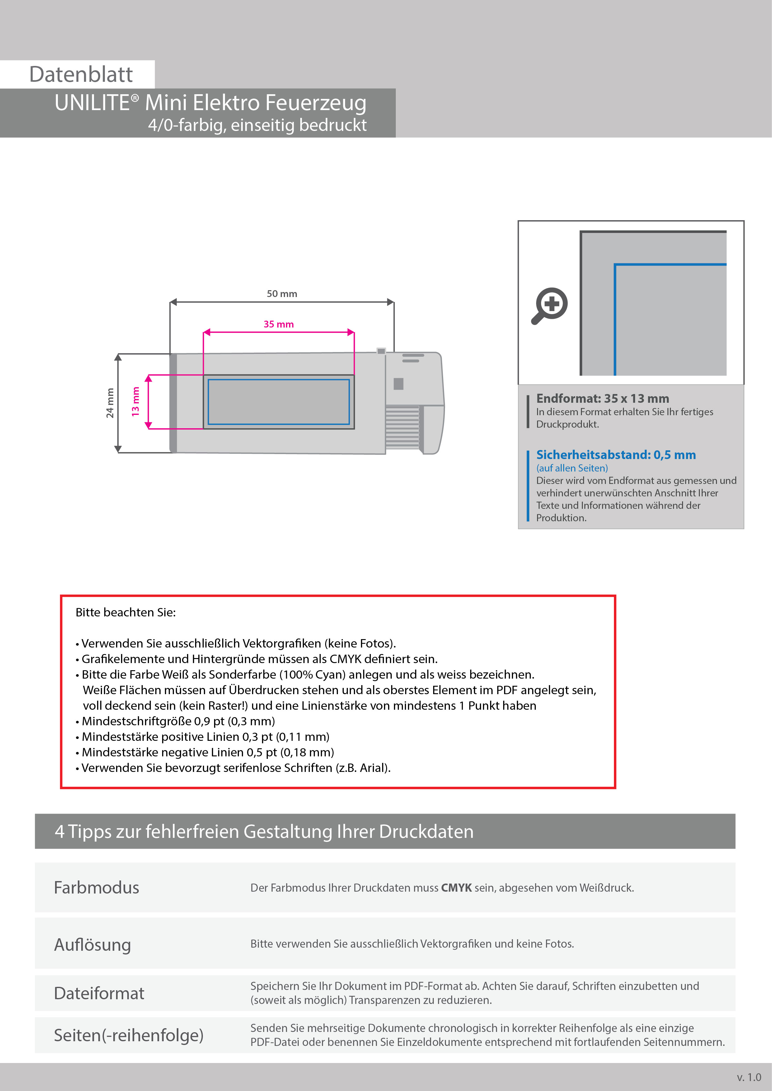 unilite®-Mini-Elektro-Feuerzeug, 4/0-farbig einseitig bedruckt
