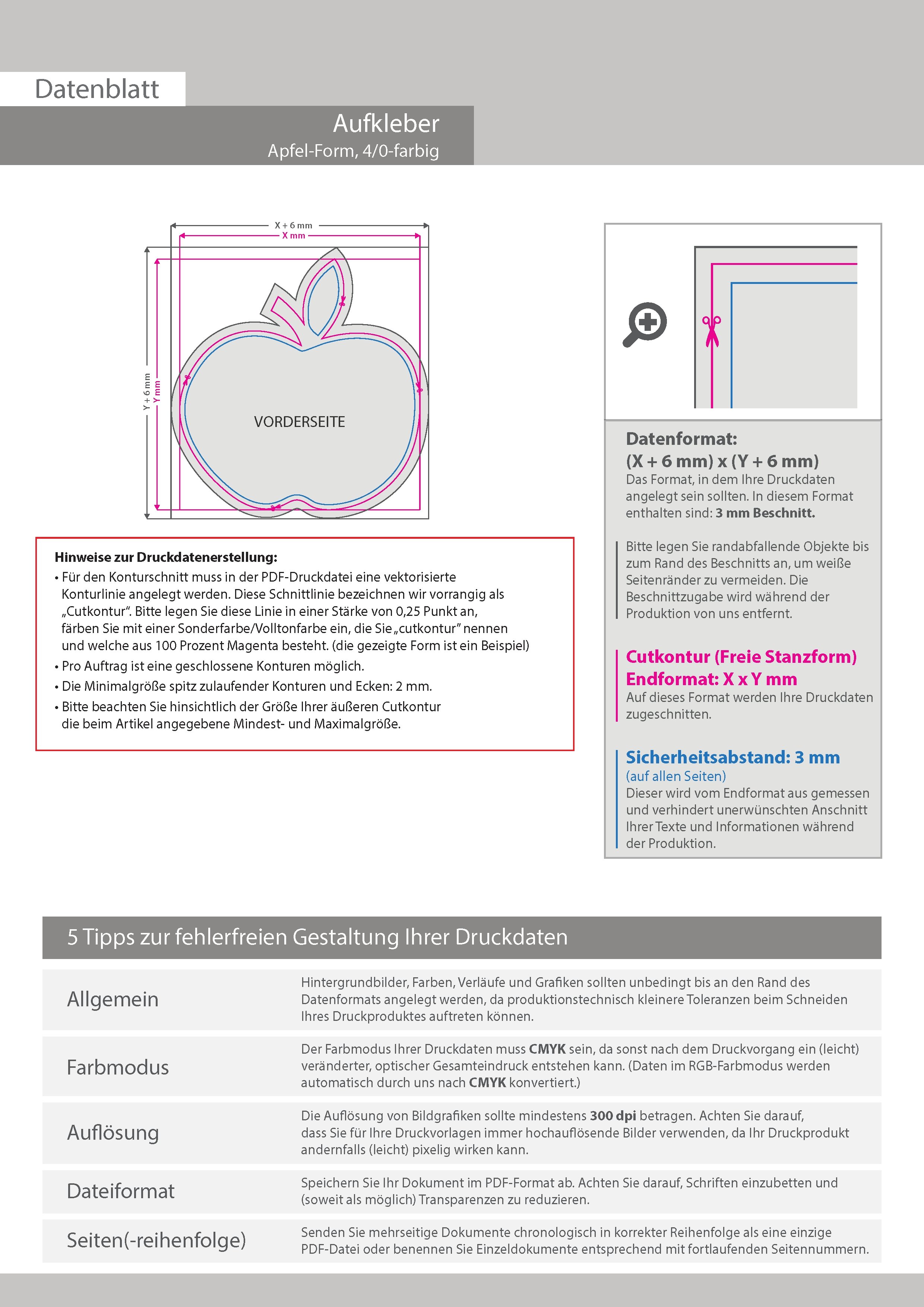 Druckdatenskizzen in der Übersicht: