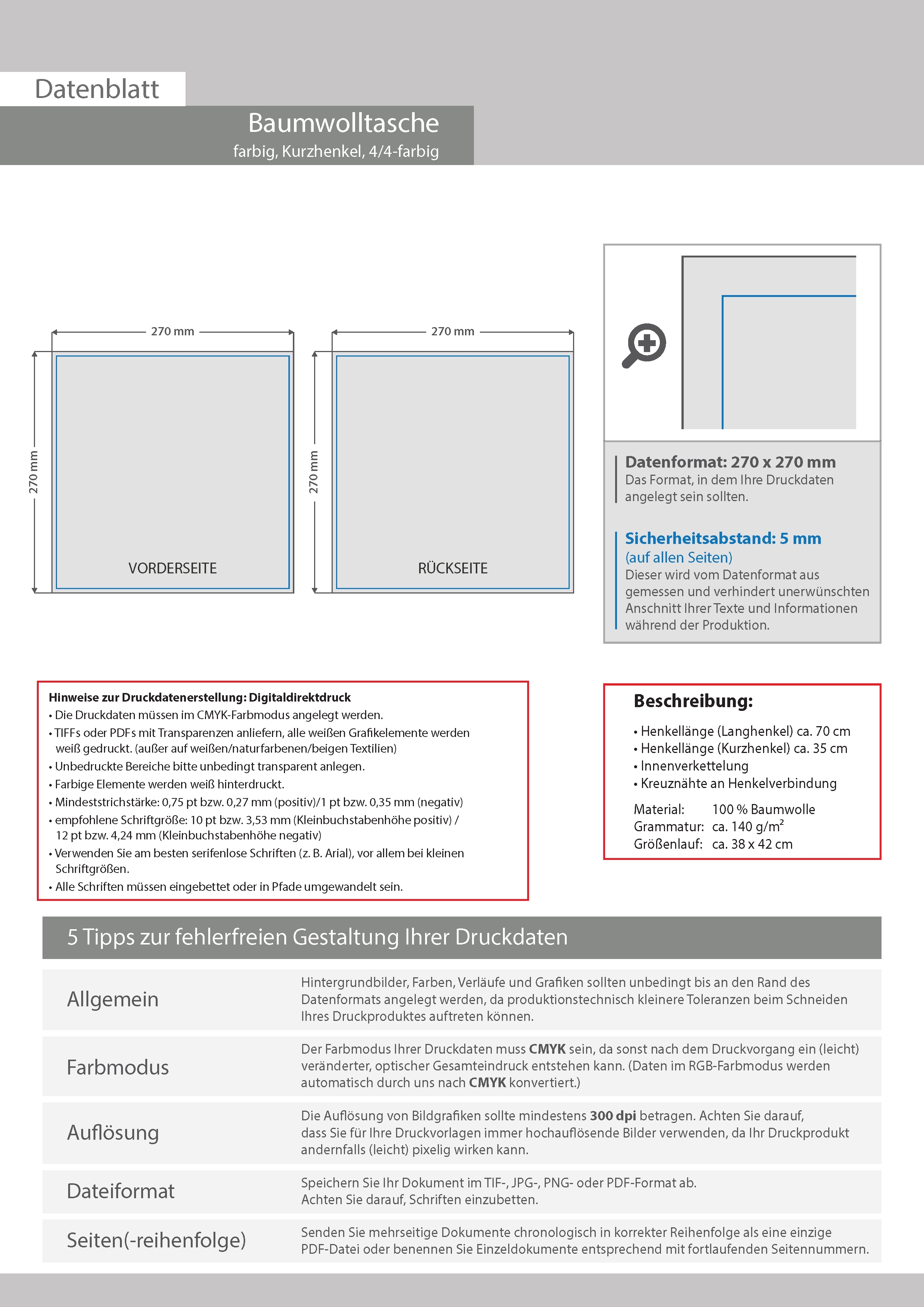 Baumwolltasche farbig, Kurzhenkel - 4/4-farbig, beidseitig bedruckt