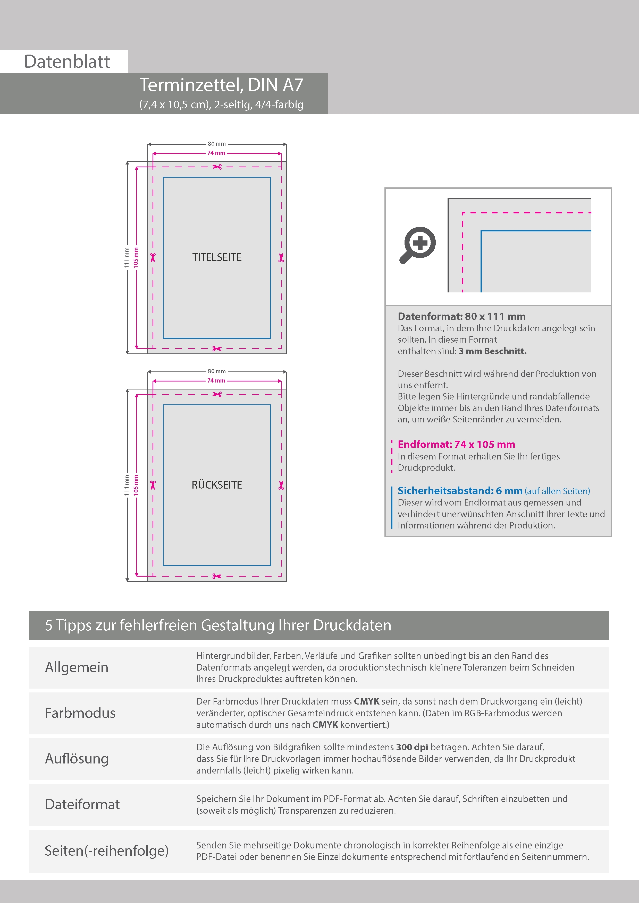 Terminzettel, DIN A7 (7,4 x 10,5 cm), 2-seitig, 4/4-farbig