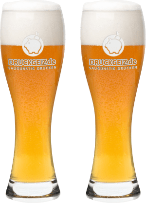 Unser Sortiment beinhaltet hochwertige Trinkgläser mit einem Fassungsvermögen von 380 ml. Diese Gläser sind perfekt für Wasser und Softdrinks geeignet. Für alkoholische Getränke in personalisierten Gläsern entscheiden Sie sich zwischen dem klassischen Bierglas mit 0,3 l und dem Weizenglas mit einem Volumen von 0,5 l. Prickelnd wird es mit unseren eleganten 0,2 l Sektgläsern. Darüber hinaus bedrucken Sie edle Weißweingläser sowie Rotweingläser mit einem Fassungsvermögen von 0,35 l bzw. 0,52 l. Urige 6 cl fassende Schnapsgläser stehen ebenfalls zur individuellen Bedruckung bereit. Bitte beachten Sie, dass die Gläser keinen Füllstrich haben. Abbildungen sind ähnlich und können je nach Vorrat variieren.